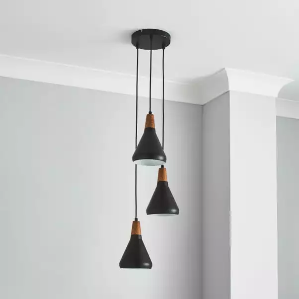 Offering a fresh contemporary design, the Wolston 3 light cluster ceiling is perfect for giving your home a light, scandi feel. Height adjustable from 25cm to 120cm, this stylish fitting features three matching conical shades suspended at different heights, complete with wood toppers for a natural touch. Available in a choice of two colours to suit your home interior space.