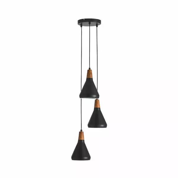 - 3 light cluster fitting that would look great in any room, comes in a choice of black or white with a wood effect finish