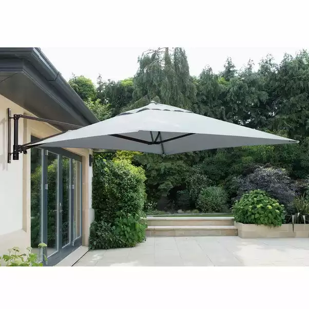 Simple and easy to use. The Garden Must Haves Wall Mounted Cantilever Parasol will make a practical addition to any garden. Made from a sturdy aluminium frame and polyester canopy the parasol is durable, resistant to fading and easy to clean.