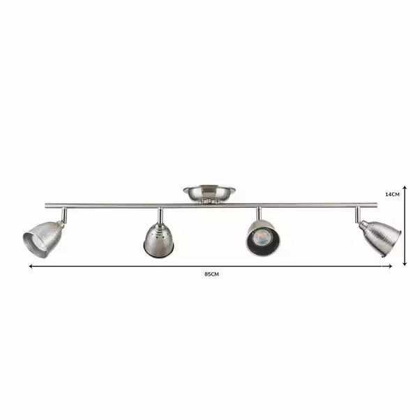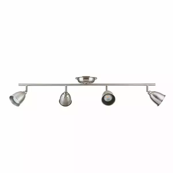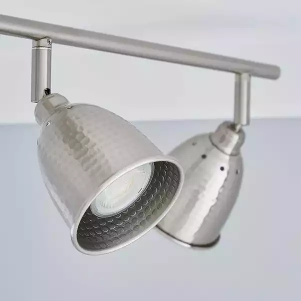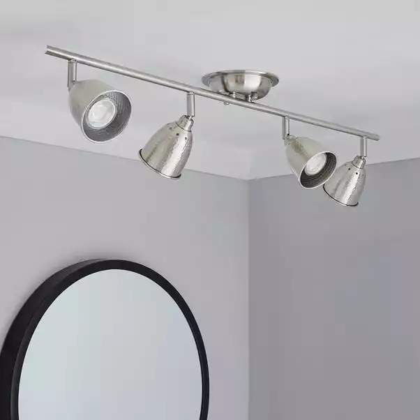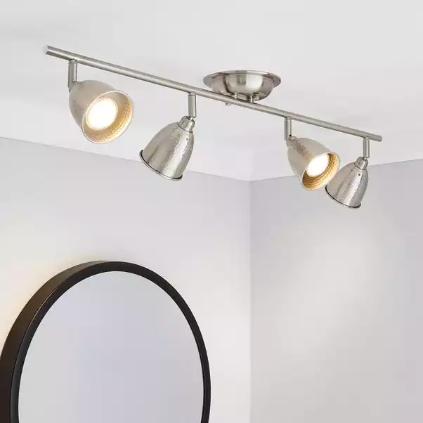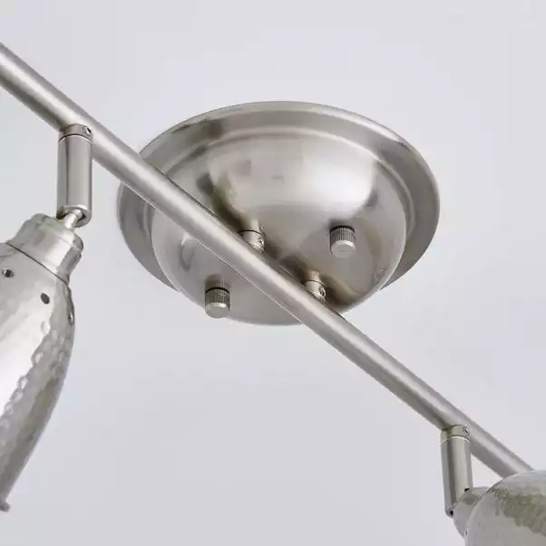 Featuring four spotlights with hammered-effect shades, this ceiling light is finished in a satin nickel effect and is dimmer switch safe.