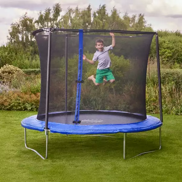 A fun and exciting addition to your garden, the 8ft Bounce Pro Trampoline with Safety Enclosure encourages exercise and time outdoors. Easy to assemble so your little one can get playing and improving their balance right away, this trampoline is constructed from galvanised steel, has a protective frame pad and stretch resistant enclosure net to keep your child safe as they play. Also featuring a UV resistant jumping mat for extra durability, this trampoline is sure to last season after season! The enclosure keeps your child from falling off the trampoline so they can stay confident as they practice their skills.