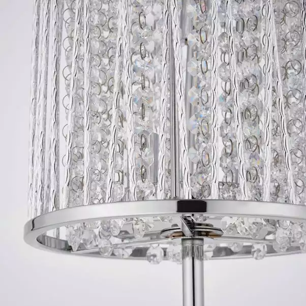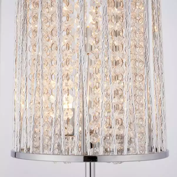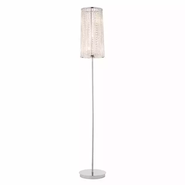 This floor lamp combines glitzy polished chrome metalwork with beautiful clear crystal details, creating scintillating light effects, perfect as an additional decorative touch to your classic or modern styled interior.