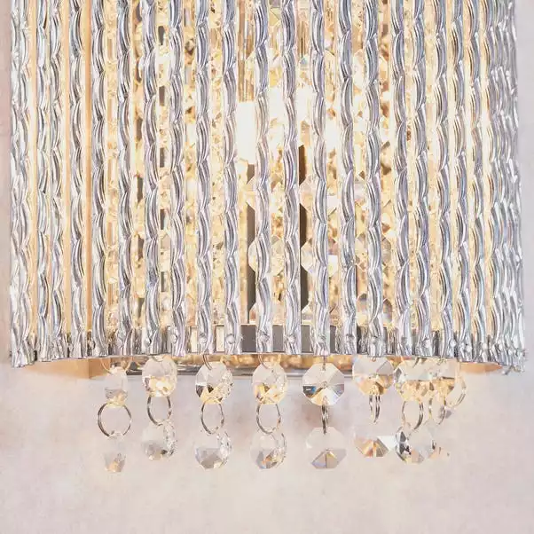 With high quality K9 reflective clear crystals, this crystal dimmable wall light adds the wow factor to any room. With a polished chrome finish this light not only is elegant but is also modern. This light is perfect for use with G9 LED lamps.